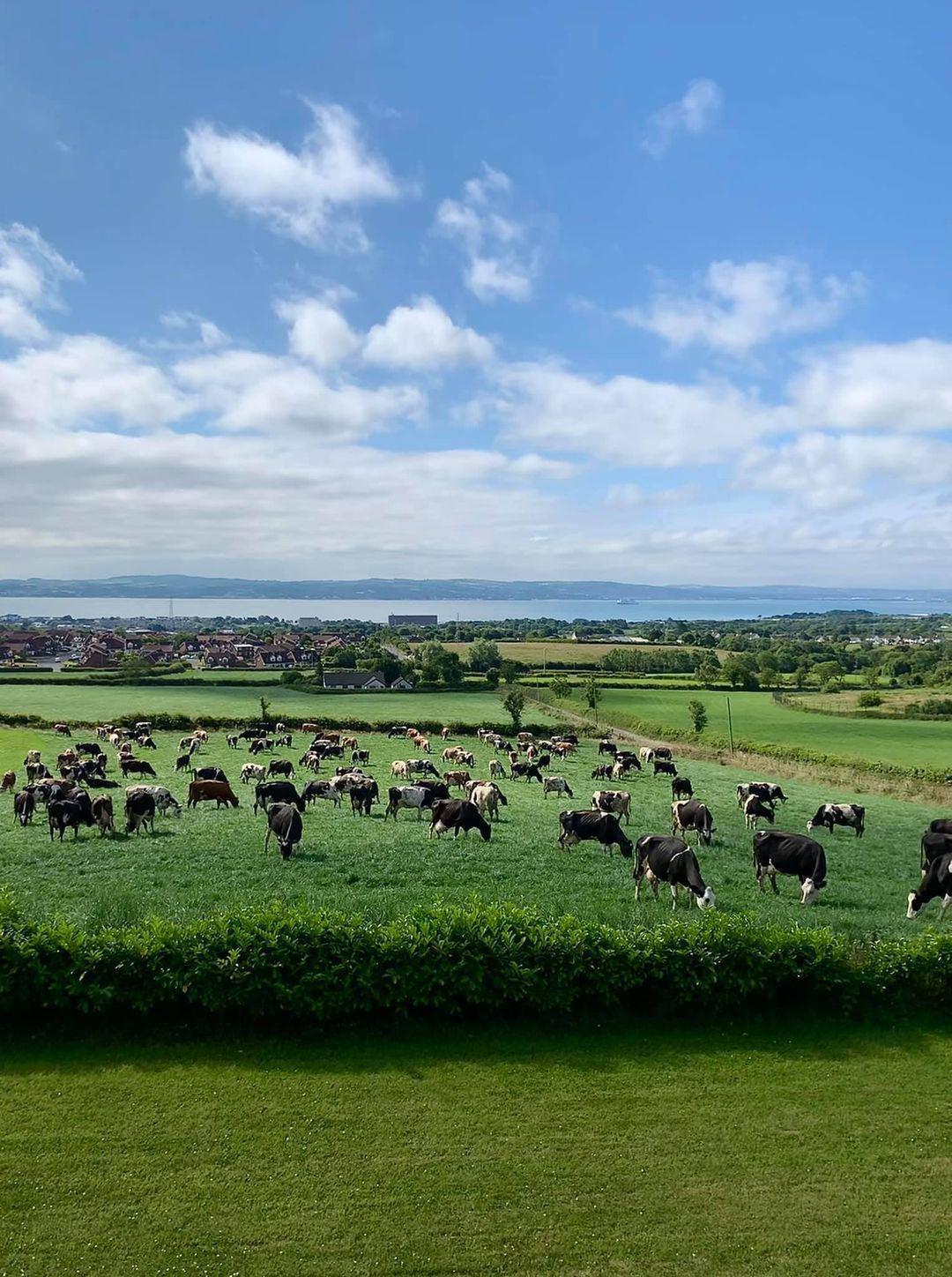 Baird’s Farm provides fresh whole milk that is both pasteurized and non-homogenized. We take pride in our family-run farm, where we emphasize the importance of maintaining the natural diet of our cows. During the summer months, our cows graze freely in lush fields with a picturesque view of Carrickfergus. Throughout the winter, they enjoy high-quality silage made from our own grass, ensuring they remain healthy and happy.